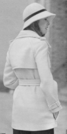 | Sie sind länger geworden, haben große Kragen und sind flaumweich. Lose Passen, sogar im Rücken (siehe Foto oben), sind das sportliche Merkmal dieser langen, wollweißen Trench-Jacke. Die Flanellhose ist anthrazit. Schuhe von Salamander. |