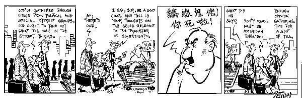 It has always put me into astonishment when friends and strangers ask me whether we in Hong Kong speak Japanese or some other tongues - oh, please - Hong Kong has been Chinese, is Chinese and will be Chinese even under British rule or not.